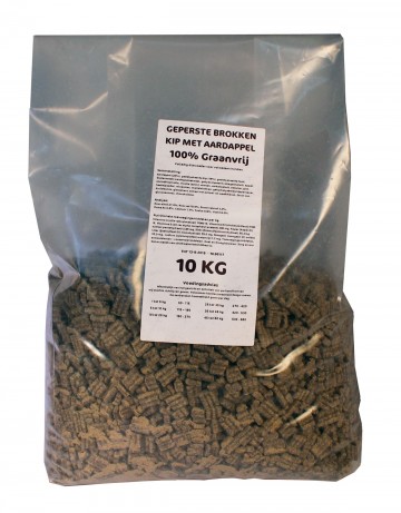 Deze geperste voeding op basis van kip en aardappel is van hoge kwaliteit. Door granen (zoals tarwe, gerst, rogge en haver) te vermijden met daarbij kip als eiwitbron, is de kans op een allergische reactie of een glutenovergevoeligheid voor granen uitgesloten. De granen zijn vervangen door aardappelen, die zeer zelden intolerantie kunnen veroorzaken bij honden. Door zijn unieke samenstelling is deze licht verteerbare voeding een uitstekende keuze voor kieskeurige honden en honden met huid/vachtproblemen, voedselintolerantie en/of spijsverteringsproblemen. Een uitgebalanceerde graanvrije voeding zonder chemische geur- kleur en smaakstoffen, 100% natuurlijk.